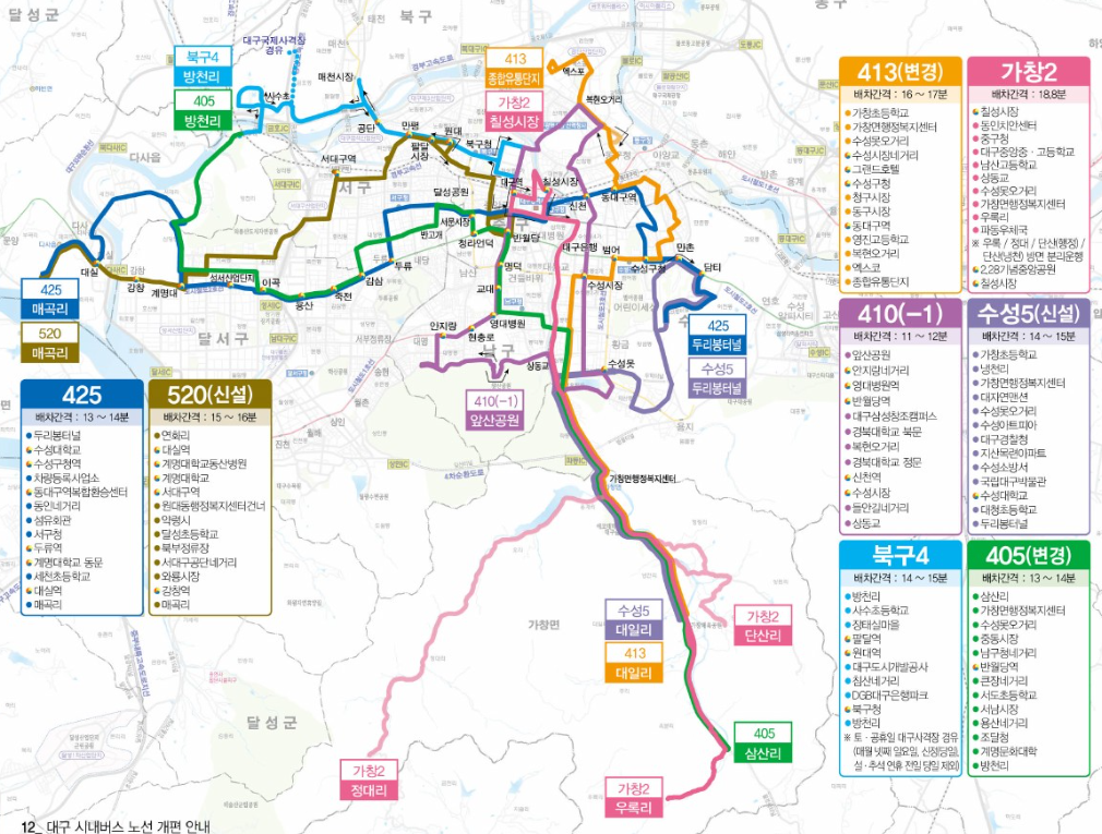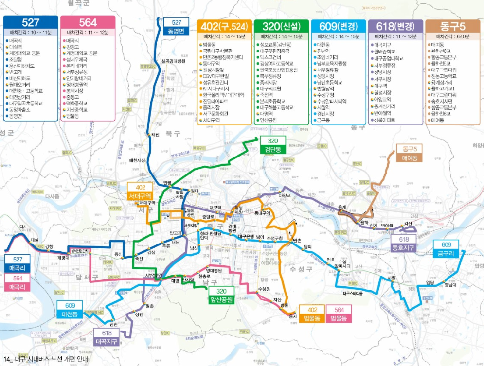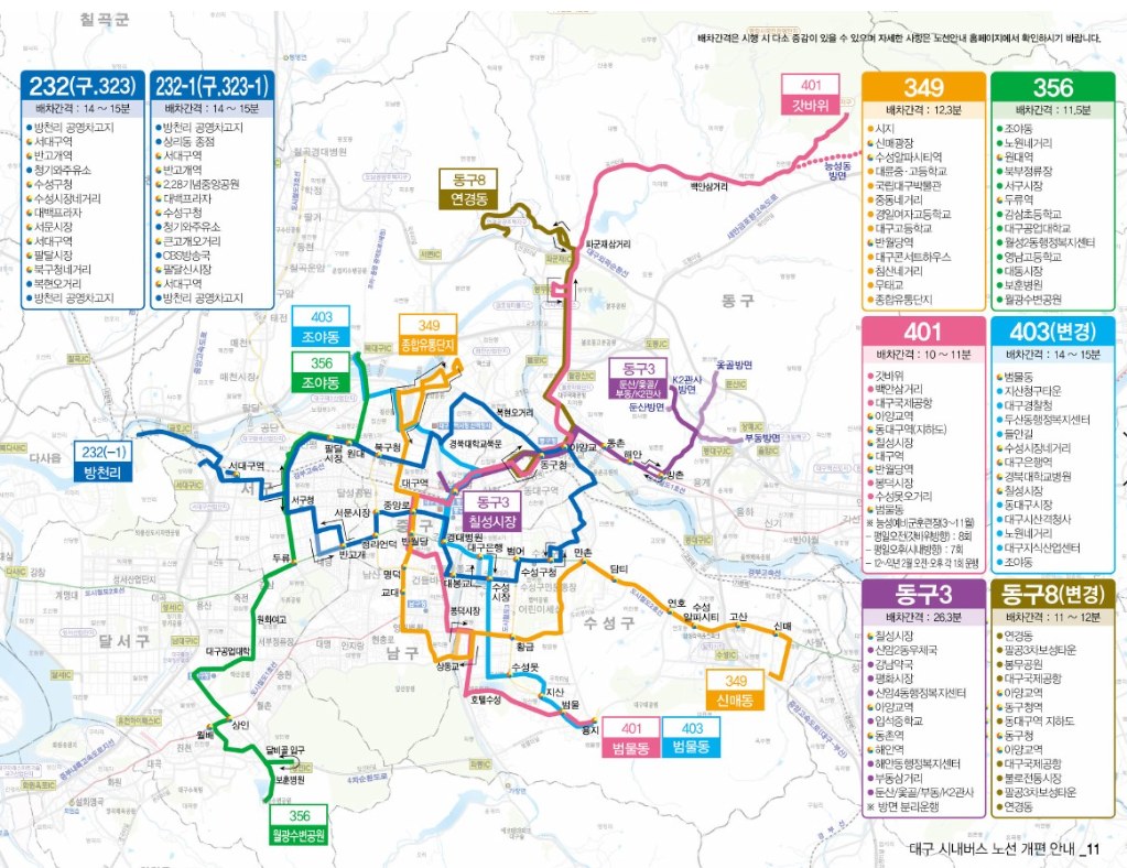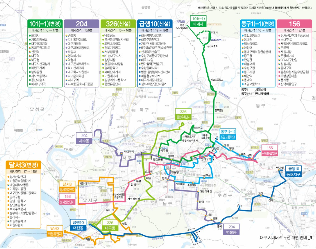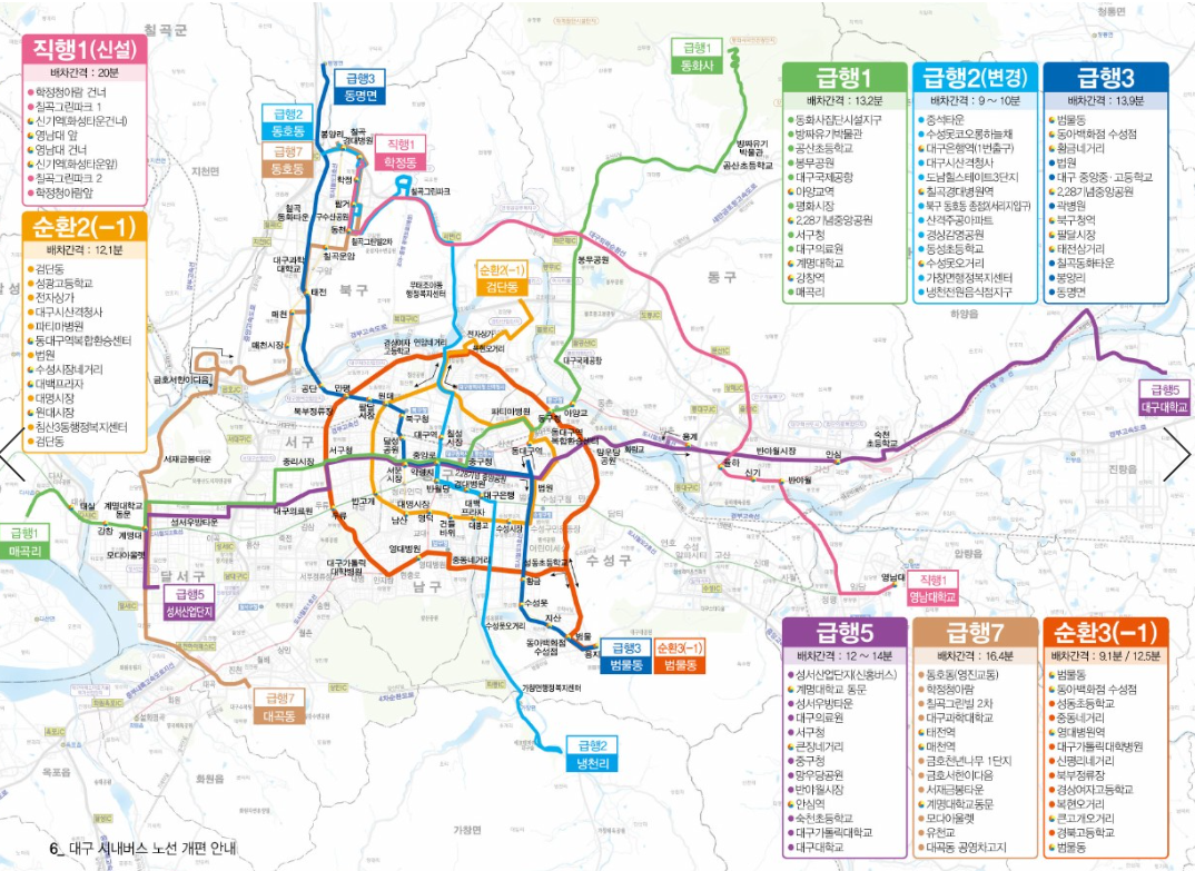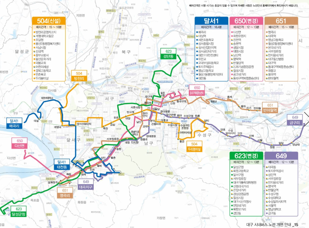 이번 개편으로 대구 시민들의 대중교통 이용 편의성이 크게 향상될 것으로 기대되며, 시민들은 개편 전 자주 이용하는 노선의 변경 사항을 미리 확인하여 이용에 불편이 없으시길 바랍니다.