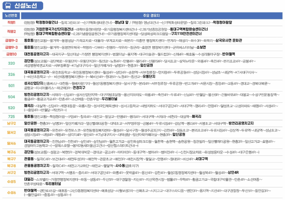 - 직행2번: 동대구역~테크노폴리스~국가산업단지