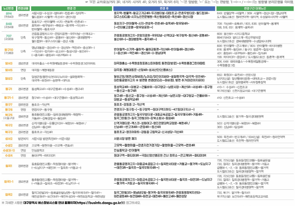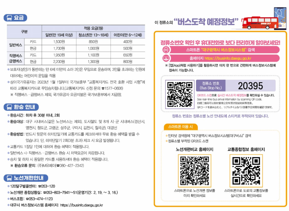 버스를 이용하고 계시는 시민들은 대구시 버스정보시스템 홈페이지나 QR 코드를 통해 변경된 노선 정보를 확인할 수 있습니다.